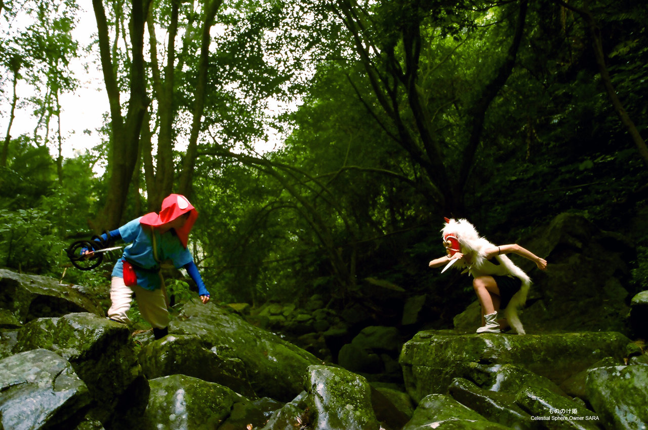 森の中で もののけ姫森の中でCN:アシタカ:雪野凝サン:SARAPhoto by 千羽/墮EDIT/SARA2011.4 西へ アシタカもののけ姫 サン出会う 山と人PR (2011年04月12日・Work History)